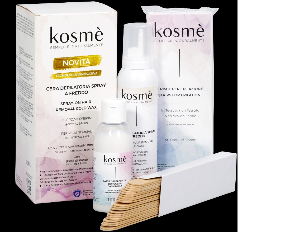 - Una bomboletta da 150 ml di cera depilatoria liposolubile spray con burro di karitè per pelli normali