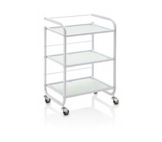 Struttura in metallo verniciato di bianco, 3 piani d'appoggio in vetro temperato