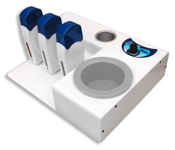 E' uno strumento semplice con triplo attacco per manipoli scaldaricariche. Ideale anche per cera a caldo da usare con l'apposito pentolino. Con vaschetta portaspatole al centro.