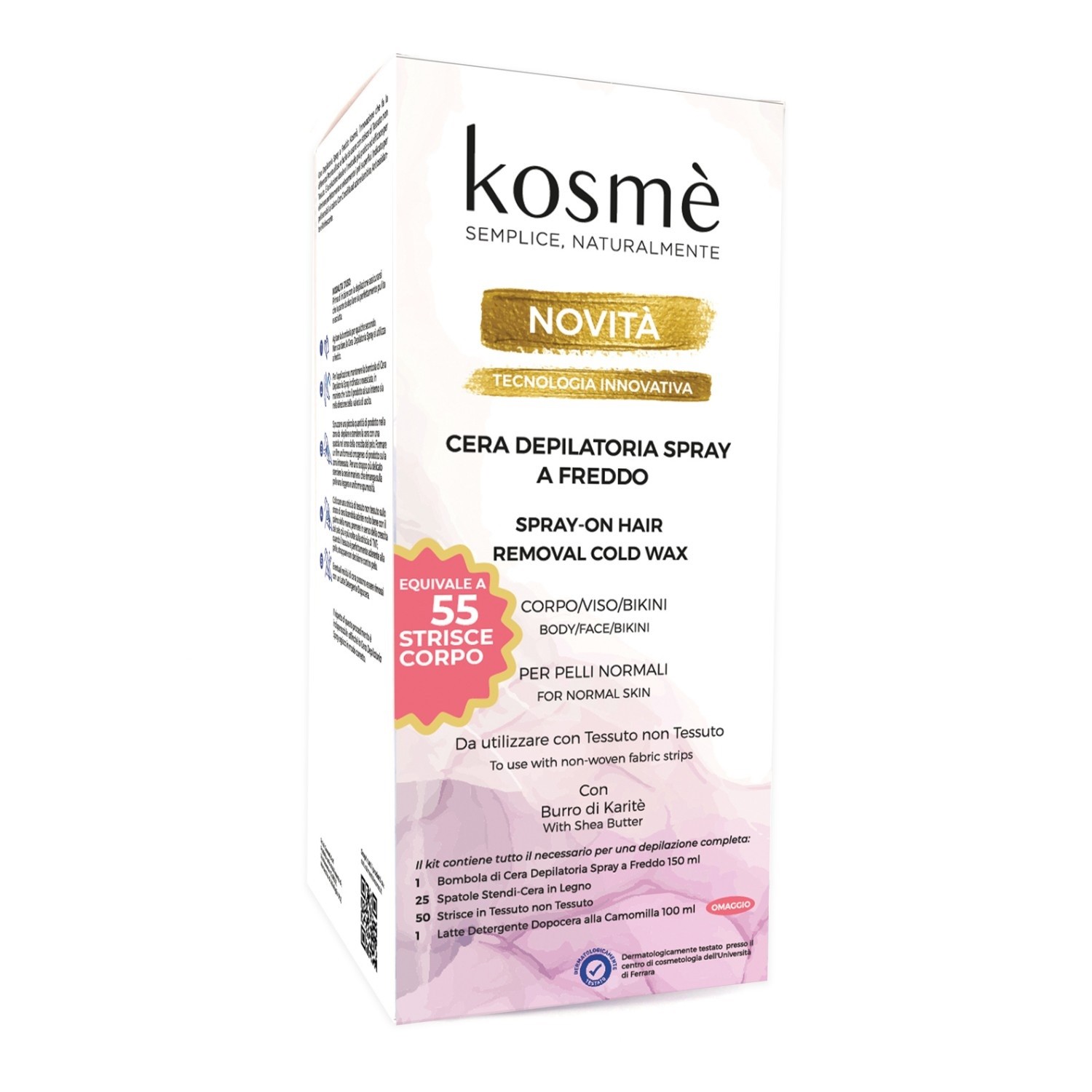 - Una bomboletta da 150 ml di cera depilatoria liposolubile spray con burro di karitè per pelli normali