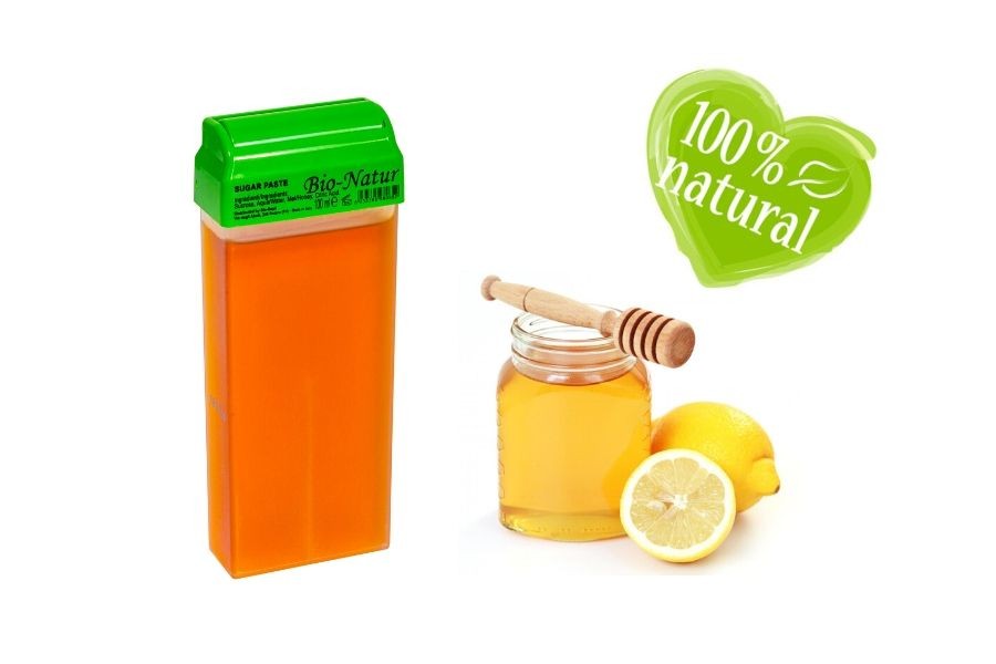 Metodo di depilazione naturale a base di zucchero, miele e succo di limone, 100% naturale, idrosolubile e biodegradabile.