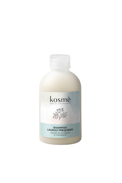 LO SHAMPOO LAVAGGI FREQUENTI KOSME' CON ESTRATTI DI SAMBUCO E MELOGRANO E' FORMULATO CON MODERNI TENSIOATTIVI E' IN GRADO DI DETERGERE E IDRATARE DELICATAMENTE ED IN PROFONDITA' IL CAPELLO.